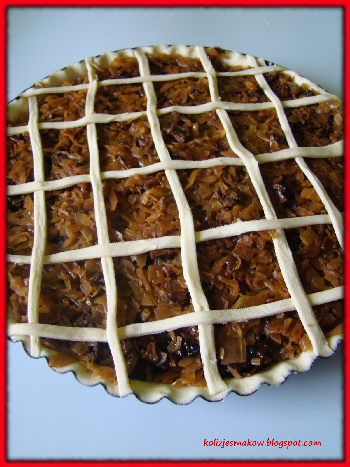 tarta z kapustą i grzybami. Wbrew pozorom bardzo prosta w przygotowaniu i